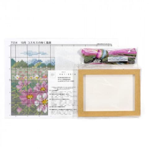 月日の流れを美しい季節の花々で表現したクロス・ステッチキットです。10月の雄大な山々に抱かれ、見事に咲きそろう一面のコスモス畑。