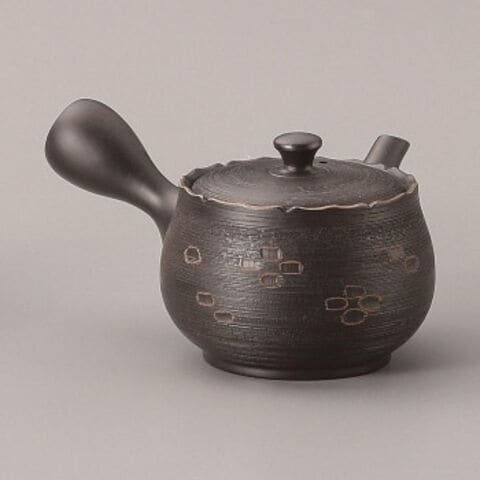 春秋黒フリル松皮彫紋帯網急須 340cc Y-529