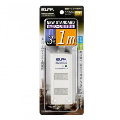ELPA 耐雷サージ機能付コード付タップ 3個口1m ホワイト WBT-3010SBN(W)