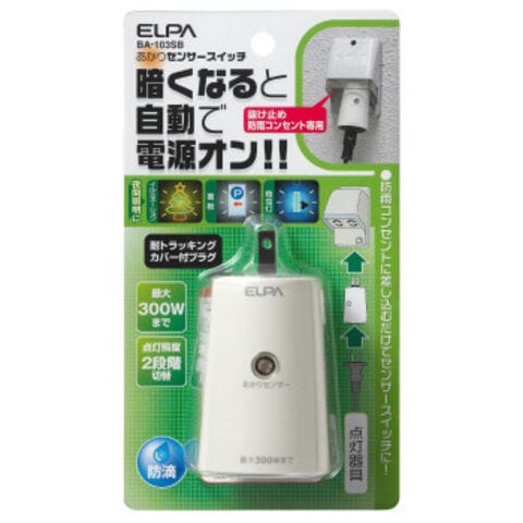 | 周囲が暗くなると自動で電源が入り、明るくなれば自動で電源が切れますのでイルミネーションや庭園灯・防犯灯・外灯につなぐことで簡単に夜間連続点灯器具として使用できます。耐トラッキングカバー付プラグを採用していますので電気火災を予防できます。 |
