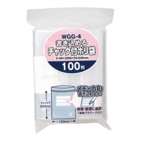 ジャパックス 書き込めるチャック付ポリ袋 透明 WGG-4 100枚入