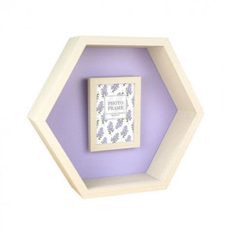 | 六角型の置き型ボックスでL判写真を掛けて飾れます。 |