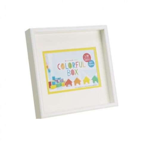 | 白マットとカラーマット付の立体物も飾れるカラフルなボックスフレームです。 |