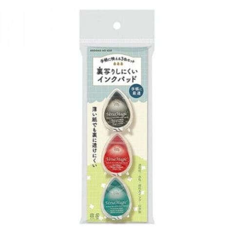 手帳に最適、薄い紙でも裏に透けにくいインクパッド「バーサマジック」を3色セットにしました。