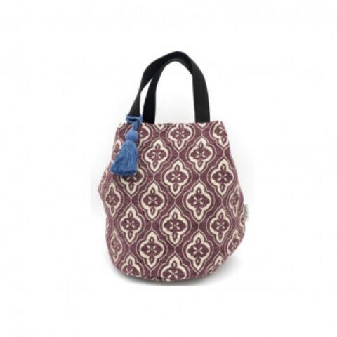 | 物の出し入れがしやすいバケツバッグです。ブルーのタッセルがアクセントになっています。 |
