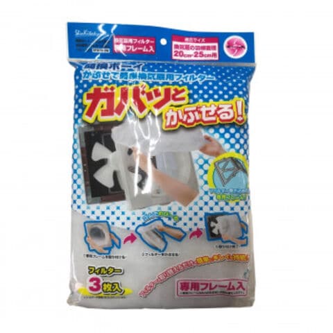 | フィルターの周囲にゴムが入っています。換気扇全体に伸縮するフィルターを被せるだけだから、フィルターの交換が簡単です。フィルターの巻き込み防止フレームは、軽くて丈夫なピラミッド構造です。羽根径20・25cmの換気扇に取り付けできます。フレームをより丈夫に改良しました。 【注意点】コンロ等の火元から1m以上離れた場所に設置、炎の上がる料理をしない等、火災予防のための注意が必要です。 |