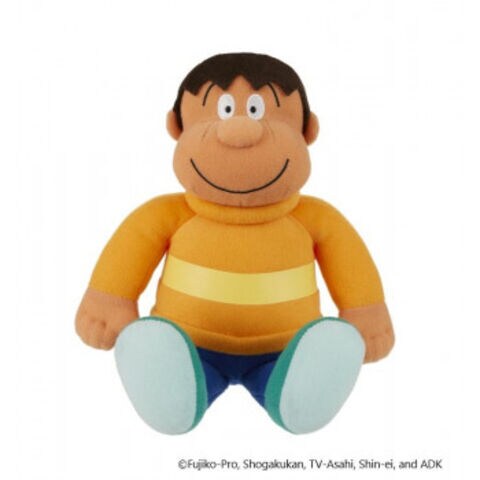 | ジャイアンのぬいぐるみがリニューアルしました。お洋服はアニメ設定に合わせた色になっています。ぬいぐるみの細部まで、かわいくなるように微調整しています。 |