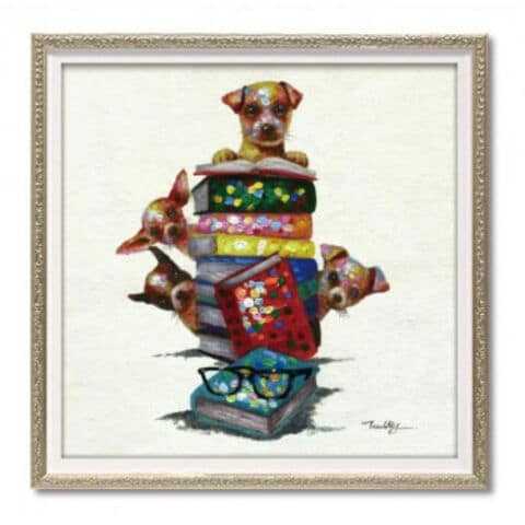 オイル ペイント アート「ドッグ オン ブックス」 Sサイズ OP-07024