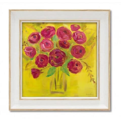 カナダ女性作家であるファリダ ザマンの絵と、額がセットになった商品です。絵の表面を特殊な透明ゲルを使って凹凸加工を施し、油絵のような質感を出しています。100%アクリル製の材質で、優れた柔軟性と耐水性があります。紫外線にも強く、油絵のように亀裂が生じたり焼けて変色することもありません。乾いた柔らかい布でサッと拭くだけでの簡単お手入れも魅力です。