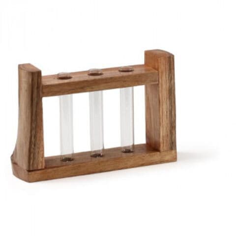 試験管とチークウッドを組み合わせたシンプルなフラワーベースです。