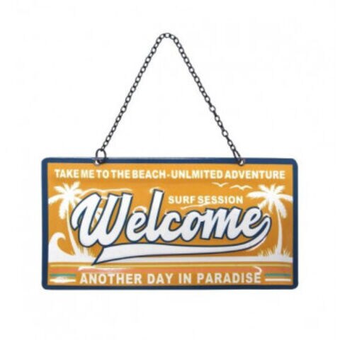 | ナンバープレートのようなティンプレートにWELCOMEのロゴをデザイン。さり気なく描かれたパームツリーがリゾートな雰囲気です。エントランスやお部屋のドア、ショップの入口などにご使用ください。 |