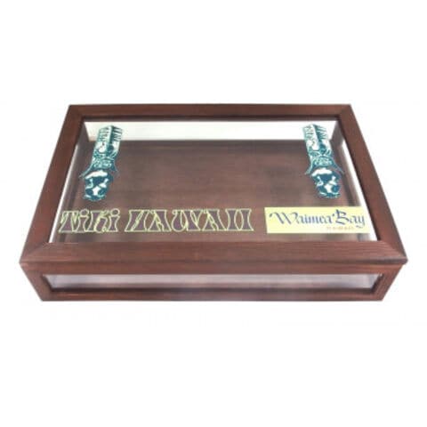 | 大き目のウッドケースには涼し気なデザインがプリントされていて素敵なアクセントになっています。お気に入りのコレクションを飾ってください。 |