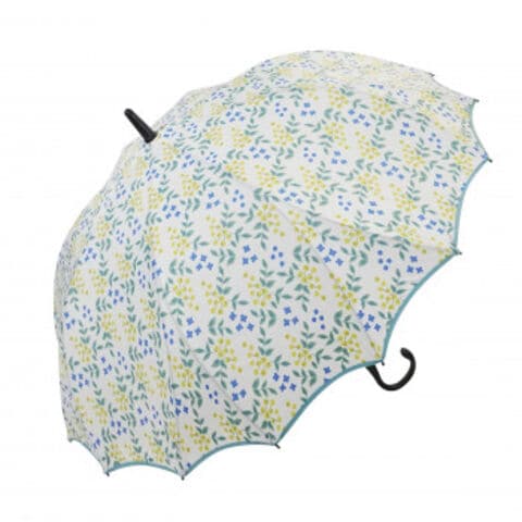 | 雨が漏れにくいシームレスな生地構造です。16本のグラスファイバー骨で風に強い設計。花のように広がる美しい骨組みが特徴です。ゴム製の手元と石突きで、傘を立てかけた時も滑りにくい仕様です。 |