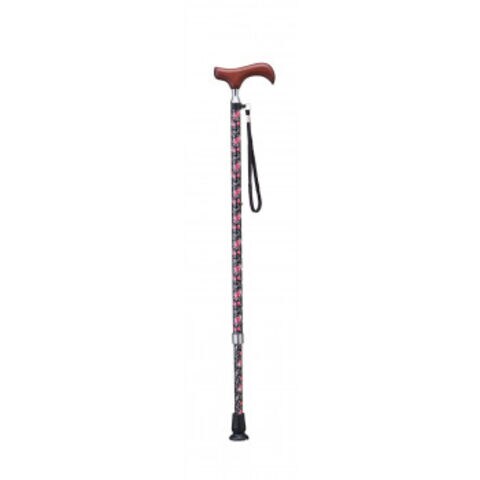 グリップ下のシャフトに細い金属をあしらったスリムネック構造により長時間の使用でも指の間が痛くなりにくくするハイスペック仕立て。スリムネックの銀色に合わせて調節リングも銀色に仕立てたお洒落なデザイン。杖先ゴムにはエレガントさを保ちながら接地面積を最大限に高めた最新式タイプを使用、どんな角度で突いてもゴムの柔軟性を生かしてグリップ力を高めてくれます。