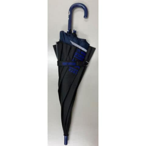 | 背中の荷物が濡れにくい後ろが伸びる傘。一コマ透明仕様で視界良好。安全に配慮した反射テープ仕様。 |
