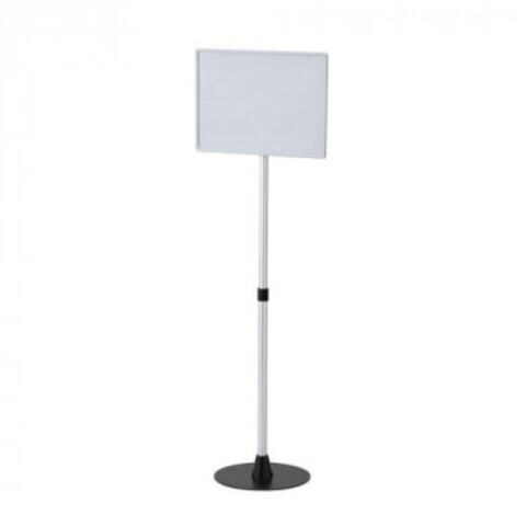 | 壁面に頼らず、自由な場所でA3・A4のラミネート表示が行えます。表示板は、タテ・ヨコどちらにもセットできて、約40cm分の高さ調整が可能です。 |