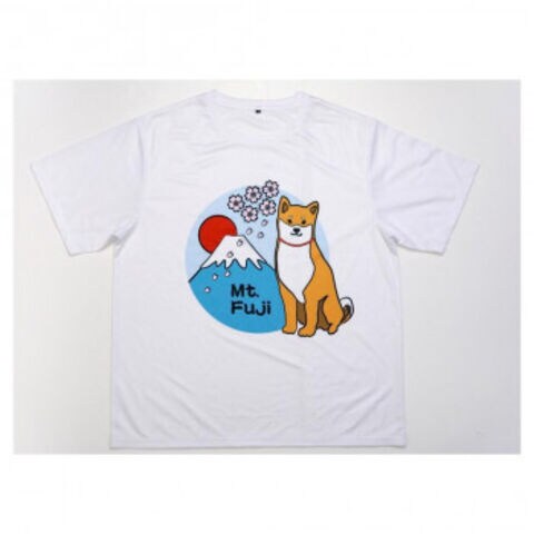 | 富士山と柴犬がプリントされたTシャツです。ユニークなデザインが魅力的です。 |
