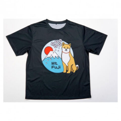 | 富士山と柴犬がプリントされたTシャツです。ユニークなデザインが魅力的です。 |
