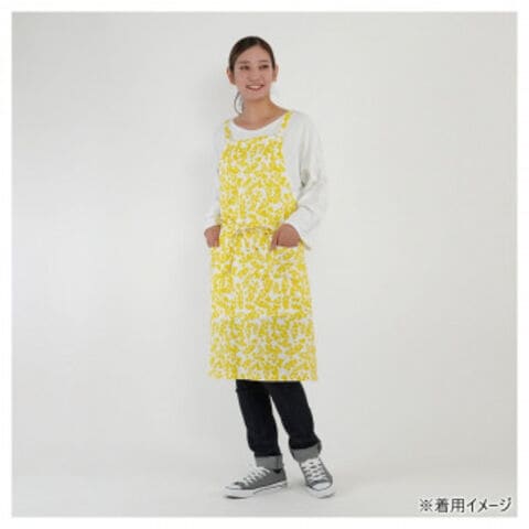 | 黄色と白の配色がかわいいエプロンです。着けていて、気分が上がること間違いなしの1枚です。 |