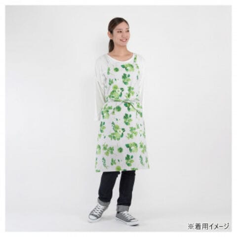 | 緑と白の配色がかわいいエプロンです。着けていて、気分が上がること間違いなしの1枚です。 |