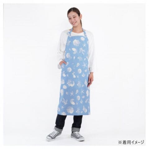 貝や人手の模様がかわいいエプロンです。着けていて、気分が上がること間違いなしの1枚です。
