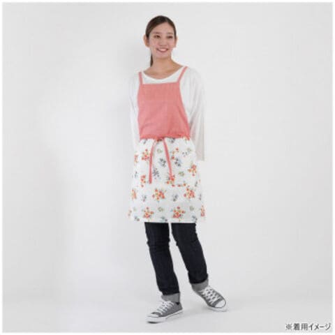 | お花の模様がかわいいエプロンです。着けていて、気分が上がること間違いなしの1枚です。 |