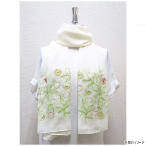 | 刺しゅうがワンポイントのアイボリーのストールです。巻くだけでコーディネートのアクセントになること間違いなしの一枚です。 |