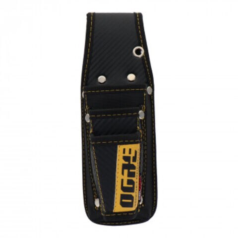 | 特殊成型加工で工具を出し入れしやすい硬めのポケットが特徴です。工具が引っ掛かりにくく、抜き差しもスムーズに。9インチ工具に対応しています。ベルト通し部は、ワンタッチベルトのバックルが通しやすい仕様です。耐久性、弾力性、柔軟性に優れたカーボン調PUレザーを使用しています。 |