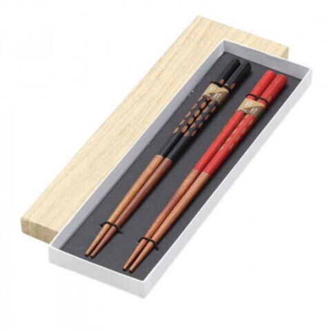 | 天然木漆塗のペア箸です。天然木の質感と漆の美しい色合いは食卓を格調高く彩ります。 |