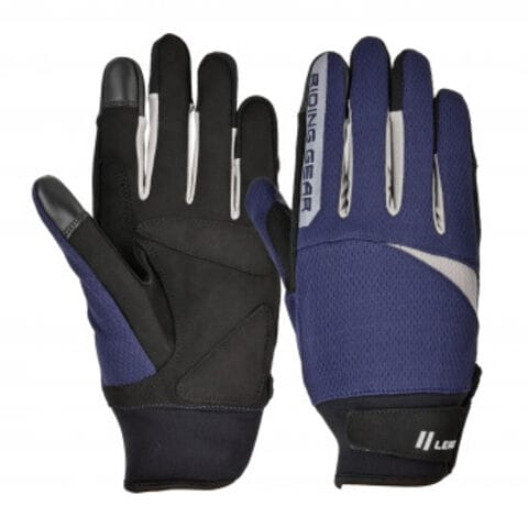 グローブを装着したままスマートフォンやタブレットの画面操作が可能です。手の甲部分には通気性の良いメッシュ素材を使用し、伸縮性が良くぴったりとフィットします。袖口は締め付け調節が便利なベルクロ式です。手の平部分は薄手で柔らかい合皮製なので、グリップが握りやすくレバー操作も妨げず、メンテナンスも簡単です。