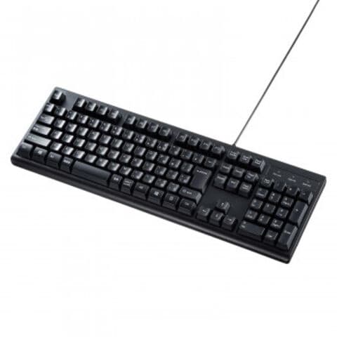 | 仕様 | カラー:ブラック キー数:109キー キーピッチ:19mm キー配列:日本語109A配列 インターフェース:USB コネクタ形状:USB Aコネクタ キーストローク:4.0±0.5mm 動作力:55±15g キースイッチ:メンブレン ケーブル長:約1.5m |