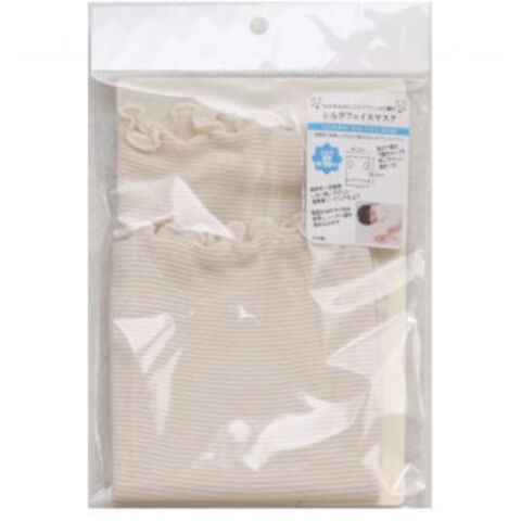 | 睡眠時に着用するフェイスマスク。シルク98%で肌あたりもやさしく、乾燥した空気をシャットアウトし潤いを保ちます。丸編み生地をそのまま使用していますので、しっかりお顔を包み込み耳かけタイプで寝返り時もずれにくい設計。 |
