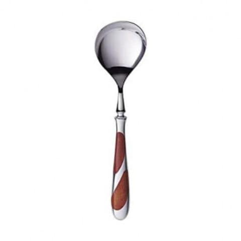 | 持ち手に斬新なデザインが施されたデザートスープスプーンです。 |