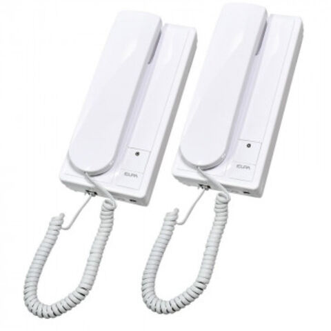 | 仕様 | 電源:単三形アルカリ乾電池×各4本使用(別売)またはDC6V 200mA センタープラス 適合プラグ:外径Φ5.5mm 内径Φ2.1mm(別売ACアダプター使用時) 電池寿命:約2年(1日10回10秒通話、音量大で使用) ※電池の性能、使用状況により電池寿命は短くなる場合があります。 通話方式:電話形同時通話式 呼出方式:電子音(プルルルルル) 配線:2線式(有極性) |