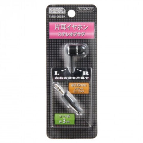 YAZAWA(ヤザワコーポレーション) カナル型片耳イヤホン3Mステレオプラグブラック TMS1063BK