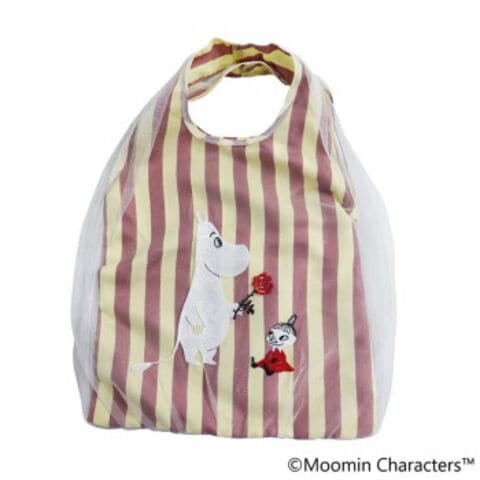 | チュール素材に刺繍でデザインされたムーミン&リトルミイ。真っ赤なバラも素敵です。チュールから透けて見えるストライプ柄も可愛い。 |