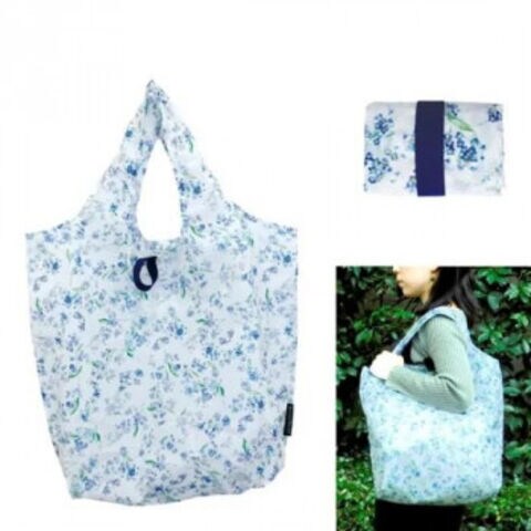| くるくる巻いてゴムで止める、コンパクトな折りたたみマイバッグ。容量は約18Lの軽くて丈夫なナイロン製、小さく散りばめられた花模様がかわいいエコバッグです。 |