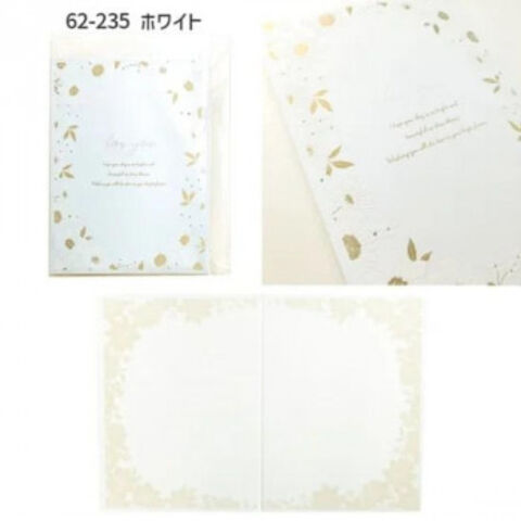 | 白で印刷された花のフレームが印象的は二つ折り色紙です。表紙は発砲シルク印刷された花がポイント、様々なシーンで活用しやすいシンプル且つ、華やかなデザインも魅力です。少人数でも使いやすいメッセージシール(24人分)付き。トレペシールが優しい雰囲気に仕上がります。 |