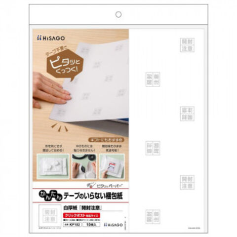 ヒサゴ テープのいらない梱包紙 白厚紙 開封注意 (クリックポスト対応サイズ) KP102