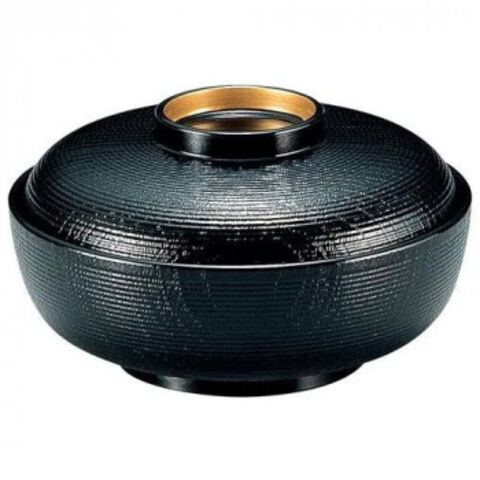 福井クラフト TA5.5寸千筋木目椀 黒高台内金 32602010
