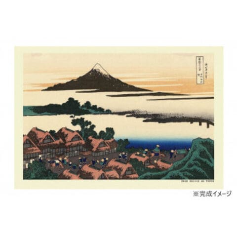 | 富嶽三十六景が描かれたジグソーパズルです。まだ朝が明ける前の薄暗い頃の富士山。 伊沢とは、温泉でも知られる石和のこと。笛吹川の川岸にある甲州街道の宿場町で、その全景を上からとらえたものです。 旅人たちが、夜明けを待たずに宿を出発するため身支度をしている人が細かく描かれています。 早朝の空気が見事に表現された作品で、日が昇って色を取り戻す前の風景が描かれています。 |