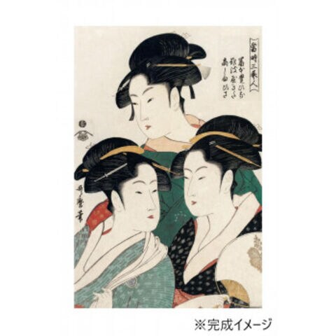 | 当時の江戸市中で評判の美女を描いたジグソーパズルです。3人ともにうりざね顔の歌麿風美人であるが、目や鼻筋、口など微妙に描き分けることにより、それぞれの持つ雰囲気の違いを表現しています。 |