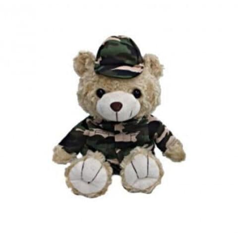 | 迷彩服を着た、かわいいくまのぬいぐるみです。 |