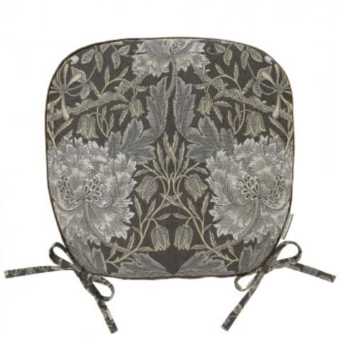 1876年に製作されたウィリアム・モリスの壁紙のデザインを織物にしました。地紋に渦巻く葉の上にチューリップとスイカズラを配したモリス独特の構成を、織組織を駆使して深みのある色合や奥行きで、魅力的に表現しています。