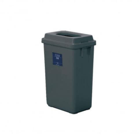 投入口が小さいダークグレーのゴミ箱です。市販の45L用ポリ袋が使用できます。製品重量の60%に再生素材を使用しています。