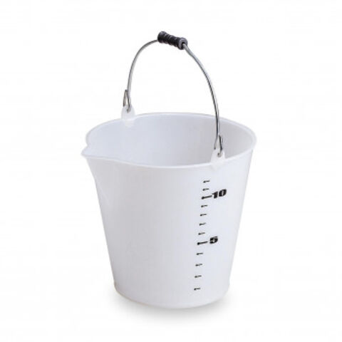 衝撃に強く、壊れにくい丈夫なバケツ。便利な容量目盛り付です。