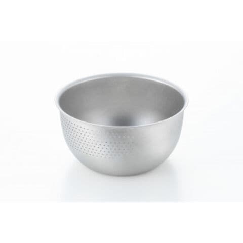 | お米をこぼさずに上手に水切りできるステンレス製穴あきボウル。洗米はもちろん、麺類の湯切りや、野菜洗いにも便利です。内面は傷がつきにくいエンボス加工。2~4合向けです。 ※食器洗浄機、食器乾燥器でお手入れの場合は、ご使用の機器の取扱説明書に従い行ってください。 |