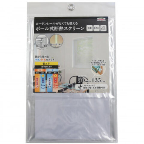 | 市販のテンションポールやのれん棒を使ってカーテンレールがない場所でも取り付けられる断熱スクリーンです。室内への熱気・冷気の侵入を抑え、冷暖房効率をアップします。お部屋の間仕切りとしてもおススメです。 |