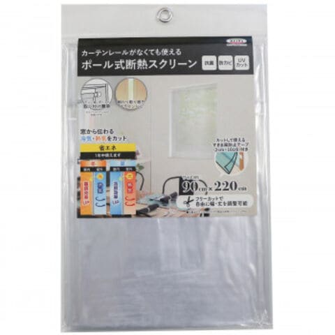| 市販のテンションポールやのれん棒を使ってカーテンレールがない場所でも取り付けられる断熱スクリーンです。室内への熱気・冷気の侵入を抑え、冷暖房効率をアップします。お部屋の間仕切りとしてもおススメです。 |