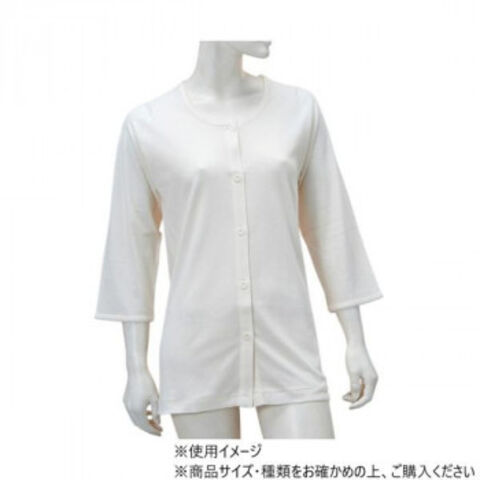 神戸生絲 婦人前開き7分袖(ボタン式)M No.50V ボタン肌着 オフ白